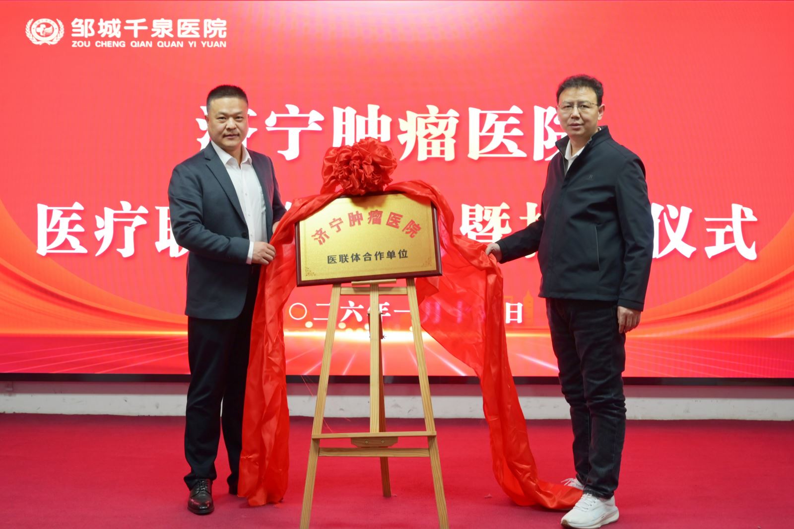 1月15日,济宁肿瘤医院与邹城千泉医院医联体签约仪式在邹城千泉医院举行。济宁肿瘤医院院长袁明各、邹城千泉医院院长张维梁出席活动并致辞,签约仪式由邹城千泉医院副院长窦庆安主持。